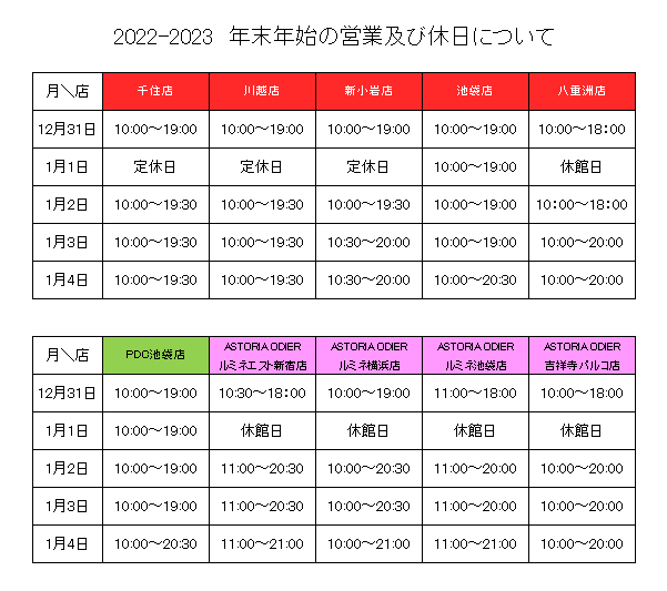 PDC池袋店 10:00~20:30(月~土)/10:00~19:30(日・祝)